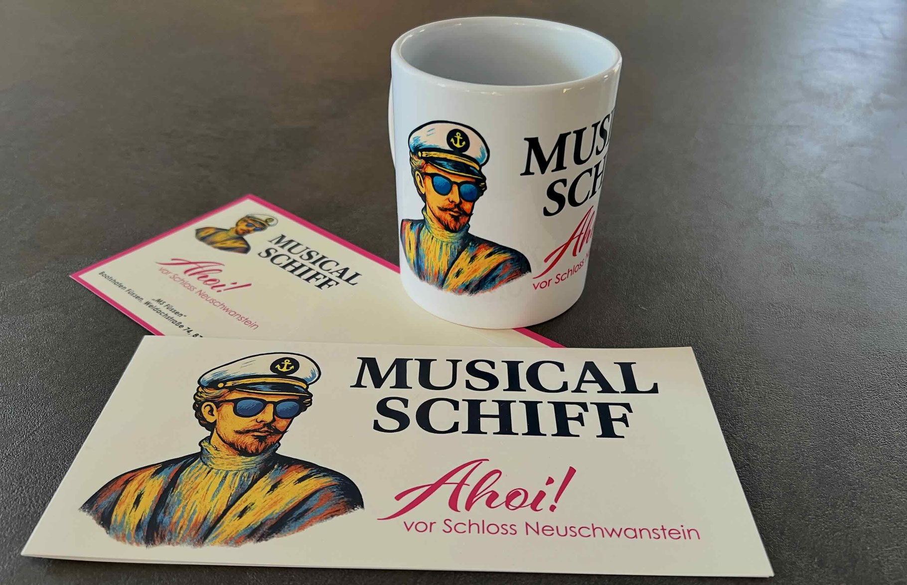 Set bestehend aus Keramiktasse "Musicalschiff" und Geschenkumschlag, ggf. ausgedrucketn Tickets (Bestelldaten müssen übereinstimmen)
